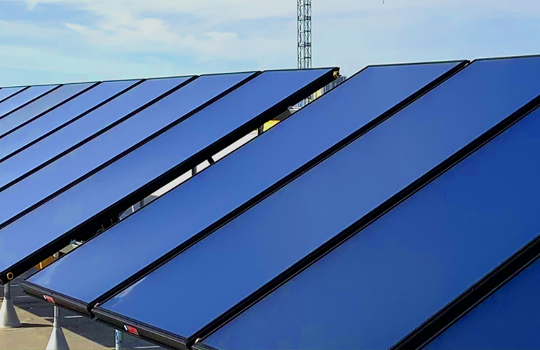Les capteurs solaires thermiques captent les rayons du soleil qui chauffent le liquide caloporteur circulant à l’interieur.